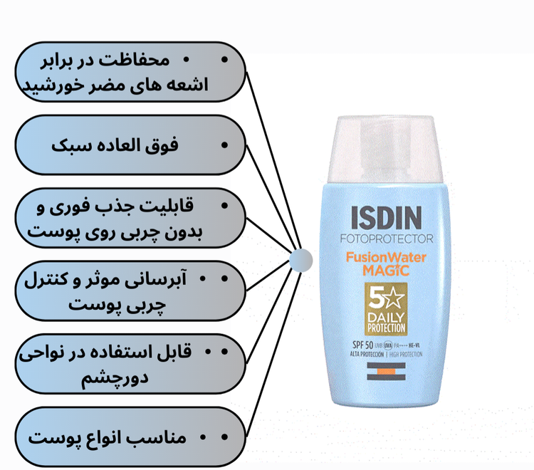 برخی از خصوصیات ضد آفتاب فیوژن واتر مجیک ایزدین :